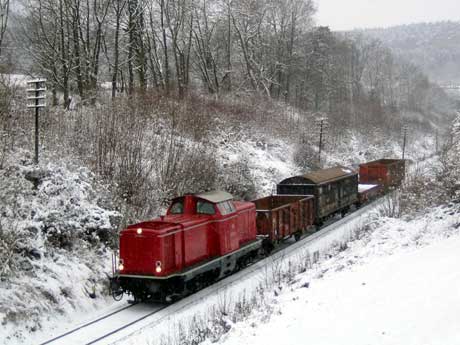 Impressionen V 100 Sonderfahrt - mit dem Fotogüterzug durch den winterlichen Odenwald am 29.12.2005