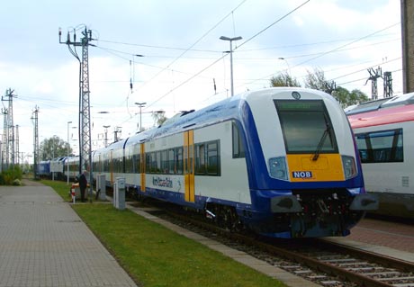 Ab 24. Oktober 2005 sind die für den Einsatz auf der sogenannten Marschbahn bestimmten neuen Züge der Nord-Ostsee-Bahn (NOB) regelmäßig zwischen Hamburg-Altona und Husum zu sehen.
