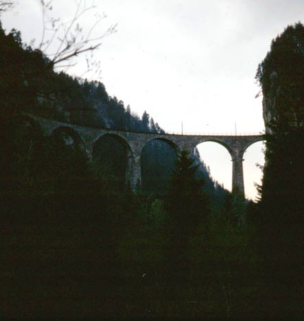 Blick vom Lauf der Landwasser auf das berühmte gleichnamige Viadukt |