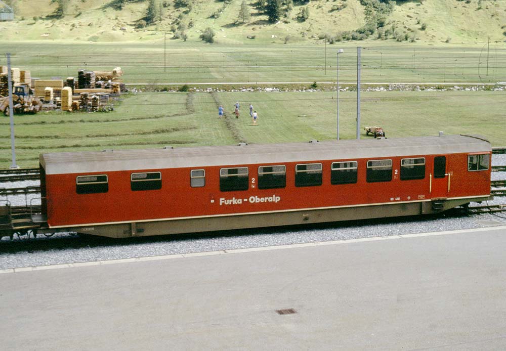 Vierachsiger Steuerwagen 2. Klasse mit Gepäckabteil FO, Serie BDt 4361 - 4362 Anzahl: 2 Baujahr: 1980 Hersteller: SWS Schieren Gewicht: 24,4 t Ladegewicht: 6,6 t Sitzplätze: 47 Stehplätze: 66 Breite des Wagenkastens: 2760 mm Höchstgeschwindigkeit: 90 km/h Bremsen Oe, Laü, mFB, VL