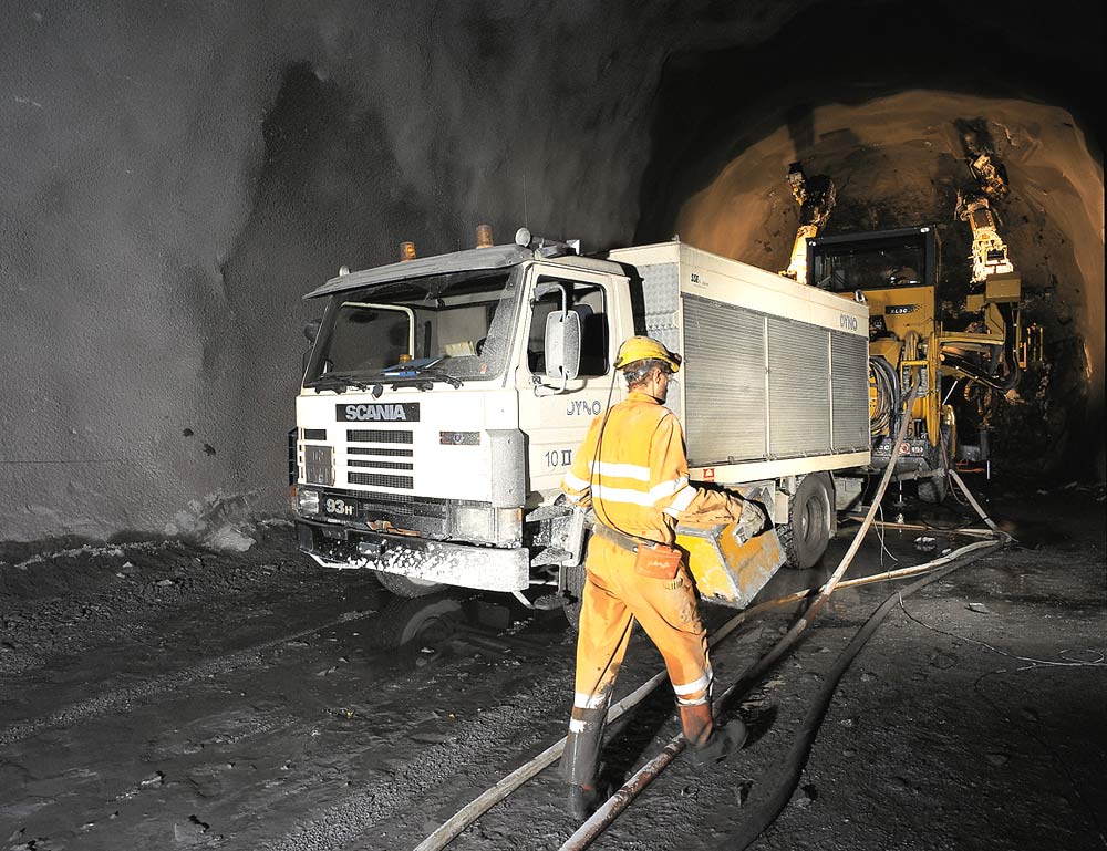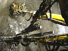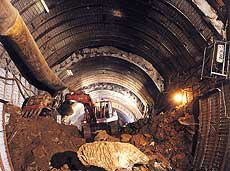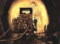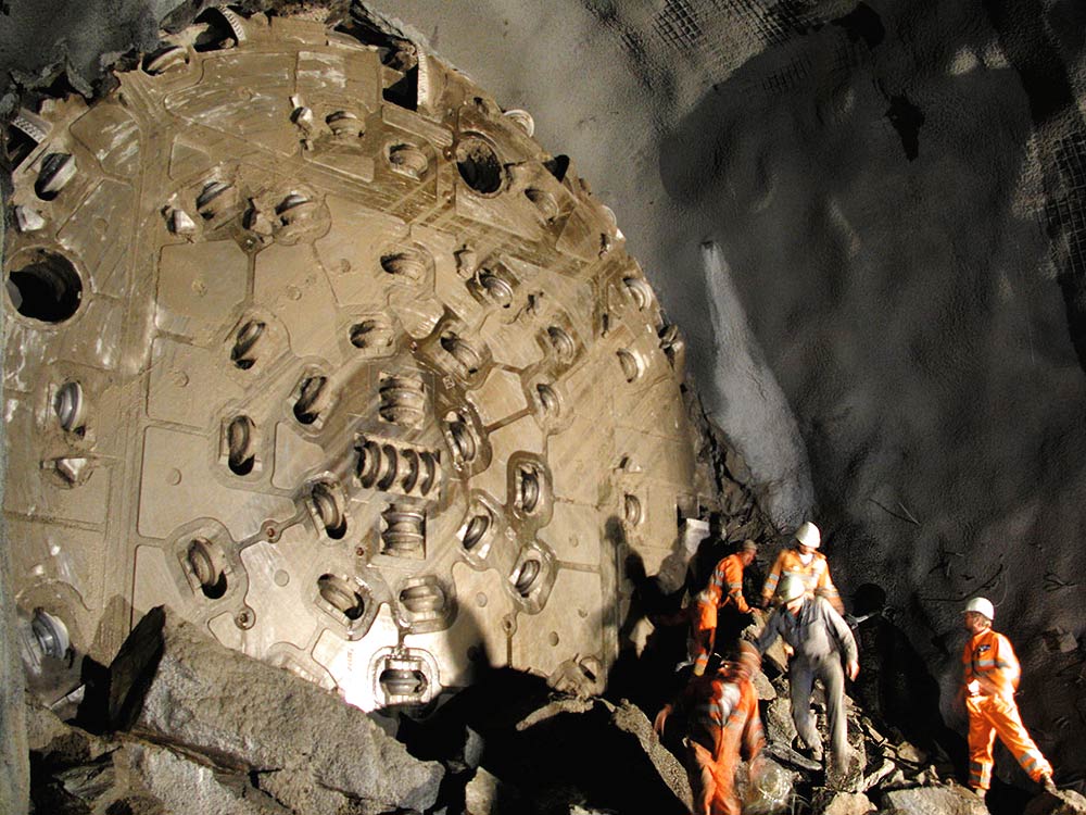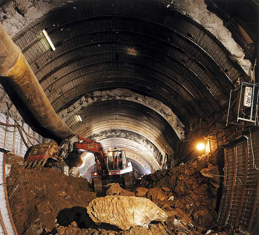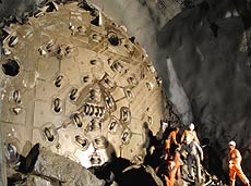 1999 wurden die ersten Meter des eigentlichen Basistunnels gesprengt. Seitdem wurde von fünf Baustellen aus mit Sprengstoff und einer riesigen Tunnelbohrmaschine rund 90 Kubikmeter Fels ausgebrochen. Nach 11 Jahren Bauzeit ist der Durchstich des 34,6 Kilometer langen Tunnels am 28.4.2005 um 10.45 Uhr zwischen Frutigen im Kanton Bern und Raron im Kanton Wallis erfolgt.