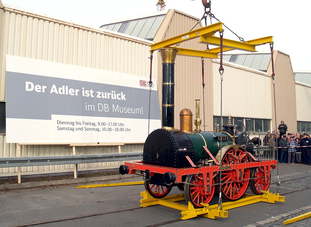 „Das wichtigste Zeugnis deutscher Eisenbahngeschichte kehrt dahin zurück, wo vor über 170 Jahren die Geschichte der Schiene begann“, sagte Dr. Jürgen Franzke, Direktor des DB Museums. „Der ADLER ist der Urahn des heutigen ICE, und war ein Meisterwerk seiner Zeit.“ Die Restaurierung der im Jahr 1935 nachgebauten Lokomotive und zwei der Personenwagen kostete rund eine Million Euro. Ein Teil des Geldes stammt aus privaten Spenden.