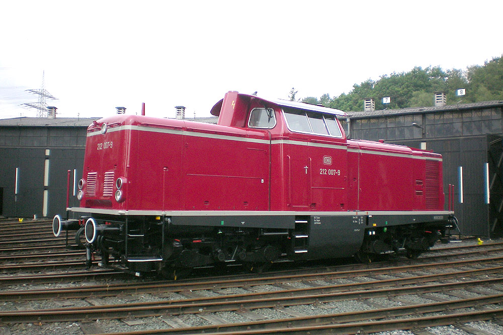 Die Lokomotive wurde 1962 von der Maschinenbaugesellschaft Kiel (MAK) gebaut und an die DB als V 100 2007 geliefert. Sie gehört damit zu den wenigen Vorserien-Loks der Bauart V 100.20 (später 212), die gegenüber der seit 1958 gebauten Baureihe V 100.10 (später 211) eine von 1100 PS auf 1350 PS gesteigerte Motorleistung aufweisen. Ab 1968 wurde die Lok als 212 007 bezeichnet. Insgesamt wurden von der Baureihe V 100.20/212 364 Lokomotiven in Dienst gestellt und lösten nach und nach die im Betrieb teureren Dampflokomotiven im Personenzug- und Güterzugdienst ab. Auch im Ruhrgebiet waren diese Maschinen zahlreich im Einsatz, z.B. auch auf der heute als S9 bezeichneten Strecke von Bottrop über Essen und Langenberg nach Wuppertal.