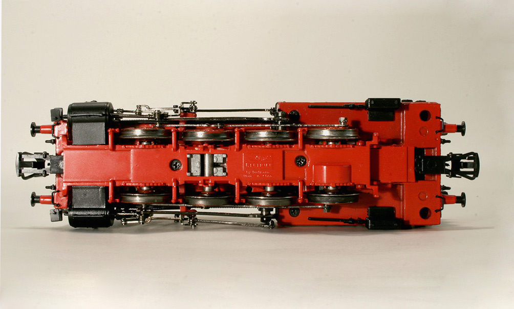 Die Fahreigenschaften des Analogmodells sind gut und den Aufgaben angemessen. Die Lok läßt sich feinfühlig regeln, fährt sanft an und hat einen – kurzen – Auslauf. Auf der vierten Kuppelachse sitzt ein einzelner Haftreifen (links); Taumelbewegungen gab es deswegen nicht. Zusammen mit einem Gewicht von 180 Gramm werden alle Traktionsanforderungen bewältigt. Dabei entwickelt das Getriebe nur ein mäßiges Geräusch.
