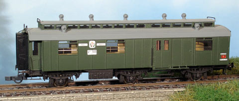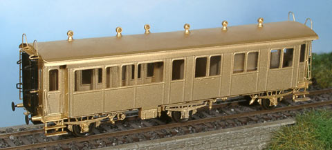 ▲ Für Personenzüge waren die Bahnpostwagen mit offener Seitengallerie lange Zeit ein wichtiges Element. Im Modell nachgebildet ist ein dreiachsiger Bahnpostwagen Z3 612-617 aus dem Jahr 1908. Interessant ist dieses Modell wegen der filigranen Gallerie und des markanten Oberlichts.