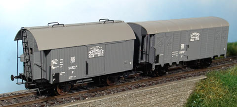 ▲ Als weitere Neuheit für 2006 wird ein Weinwagenset angekündigt. Ausgewählte Vorbilder sind ein gedeckter Weinfasswagen und ein gedeckter Weintransportwagen (Flaschenweine) der Firma Schenk.