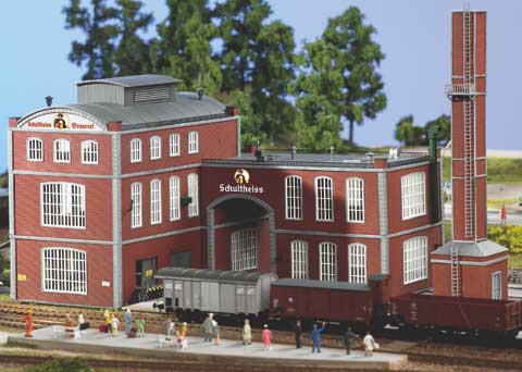HO-Zubehör: Die Fabrik mit den markanten Dächern ist etwas umgestaltet als Brauerei Schultheiss angekündigt worden. Im Gebäudeprogramm wird es noch eine typische DDR-HO-Gaststätte geben.