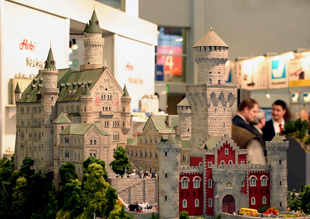 Die Verlage hatte man ebenfalls “ausquartiert” und im Rücken der Halle 4A fast an die Uraltplätze “zurückverdonnert”. Lektüre fand also draußen statt. Eine positive Sache gilt es noch zu beleuchten. Brawa und Heki haben es sich erneut nicht nehmen lassen, mit schönen Ausstellungsdioramen die Besucher zu begeistern. Brawa zeigte einen Holzladeplatz und Heki ein aus seinen Heki-dur Platten und Felsfolien zauberhaft gestaltetes Modell des Schlosses Neuschwanstein.