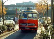 Omnibus: Daimler Benz O 321 (1955), O 309 (1981), Büssing Präsident 14 (1964) und Magirus-Deutz Saturn II (1962) (Berliner Tor – Mundsburger Brücke und Berliner Tor – Holthusenkai /Überseezentrum)