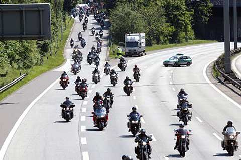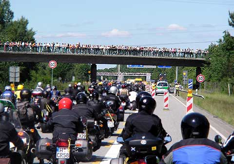 Nach dem gemeinsamen Gottesdienst setzt sich der schon traditionelle Konvoi in Gang, der das partnerschaftliche Miteinander im Straßenverkehr unterstreichen soll. Angeführt wird der Konvoi von Pastor Erich Faehling und den Ehrengästen auf ihren Maschinen.