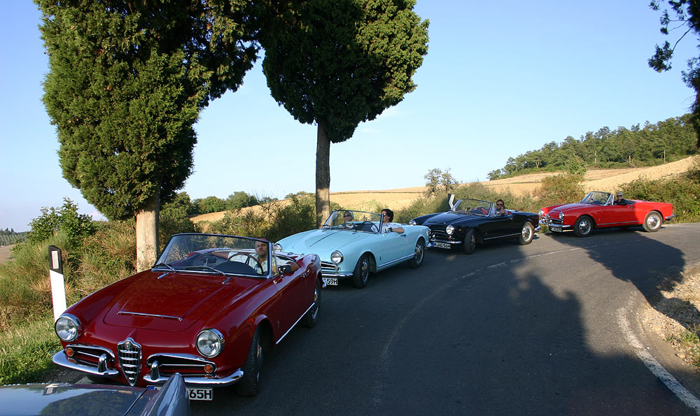 Gefahren werden die legendären ALFA ROMEOS aus der Zeit von »La Dolce Vita« und so werden sie zum Hauptdarsteller einer Zeitreise. Die Cabriolets von Nostalgic lösen Emotionen nicht nur bei denen aus, die sie fahren. Begeisterte Blicke vom Straßenrand sind gewiß. Nostalgic ist italienisches Lebensgefühl pur. Der Gast wird gleichsam zum Italiener und die Reise zur Erfüllung der Sehnsucht nach dem Süden. Es ist dieses sinnliche Reiseerlebnis, welches Nostalgic-Reisen von anderen Angeboten unterscheidet.
