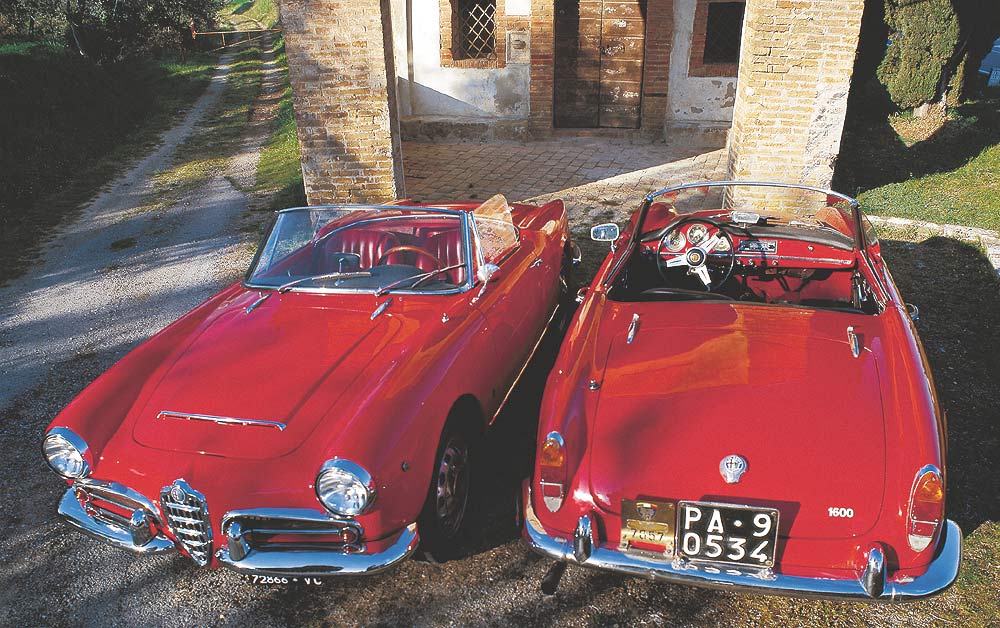 GIULIA SPIDER, im Hintergrund GIULIETTA und 2600 SPIDER