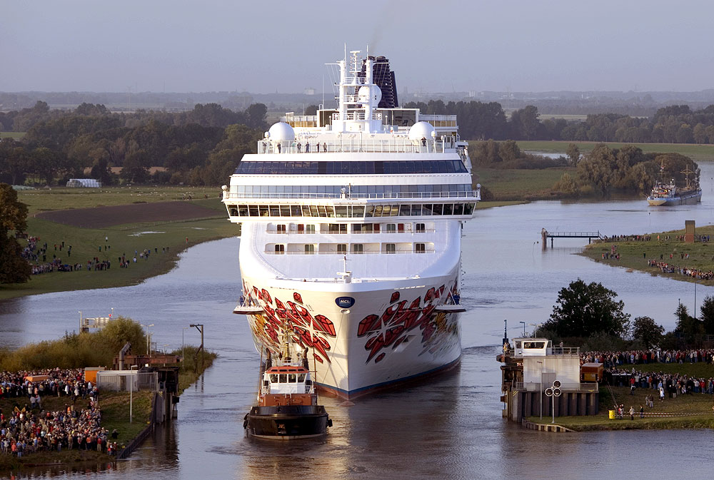 Die NORWEGIAN GEM am 15.9.2007 bei der Überführungsfahrt auf der Ems