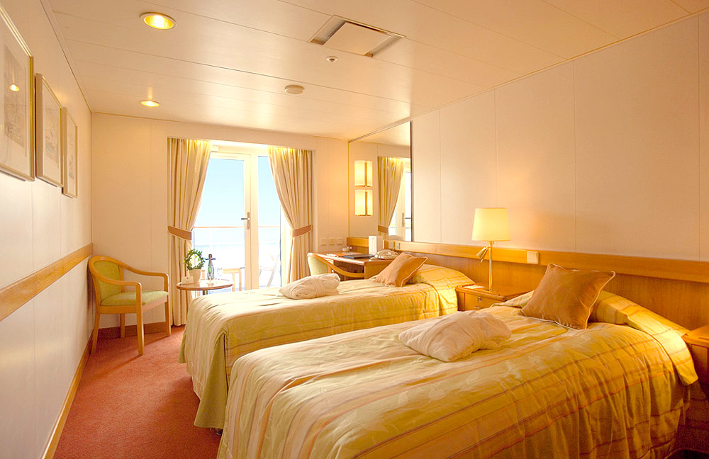 Nach dem Werftumbau 2006: die Innenausstattung der Außenkabinen (hier mit Balkon, Kat.6)